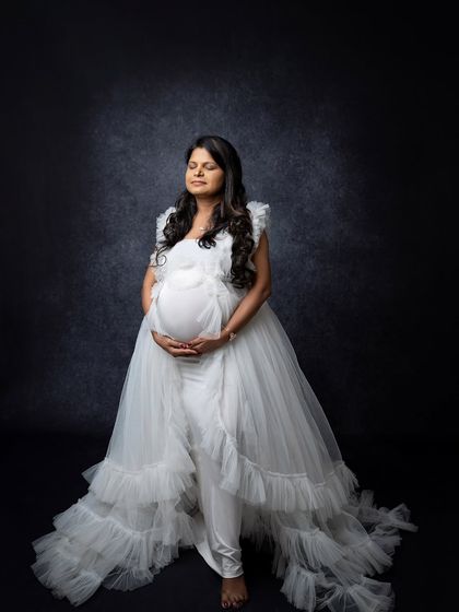 I specialize in creating elegant maternity portraits using my Canon R6 Mark II camera and professional Godox lighting setup. My sessions incorporate flowing gowns, dreamcatchers, and artistic floral arrangements to capture the beauty of motherhood.