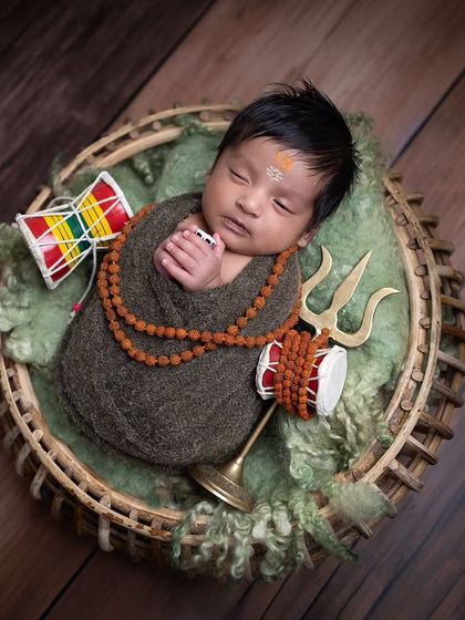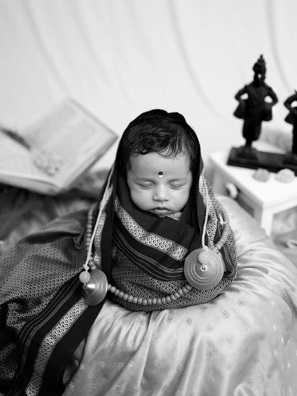 I photograph newborns aged 5 to 15 days with safe, simple setups and Maharashtrian themed props; you just bring your baby, I handle the rest.