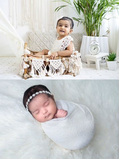 The journey from a sleepy newborn to a curious one-year-old is incredible. I love when families come back to me for milestone shoots, allowing me to create these beautiful 'Then & Now' comparisons that show just how much their little one has grown.