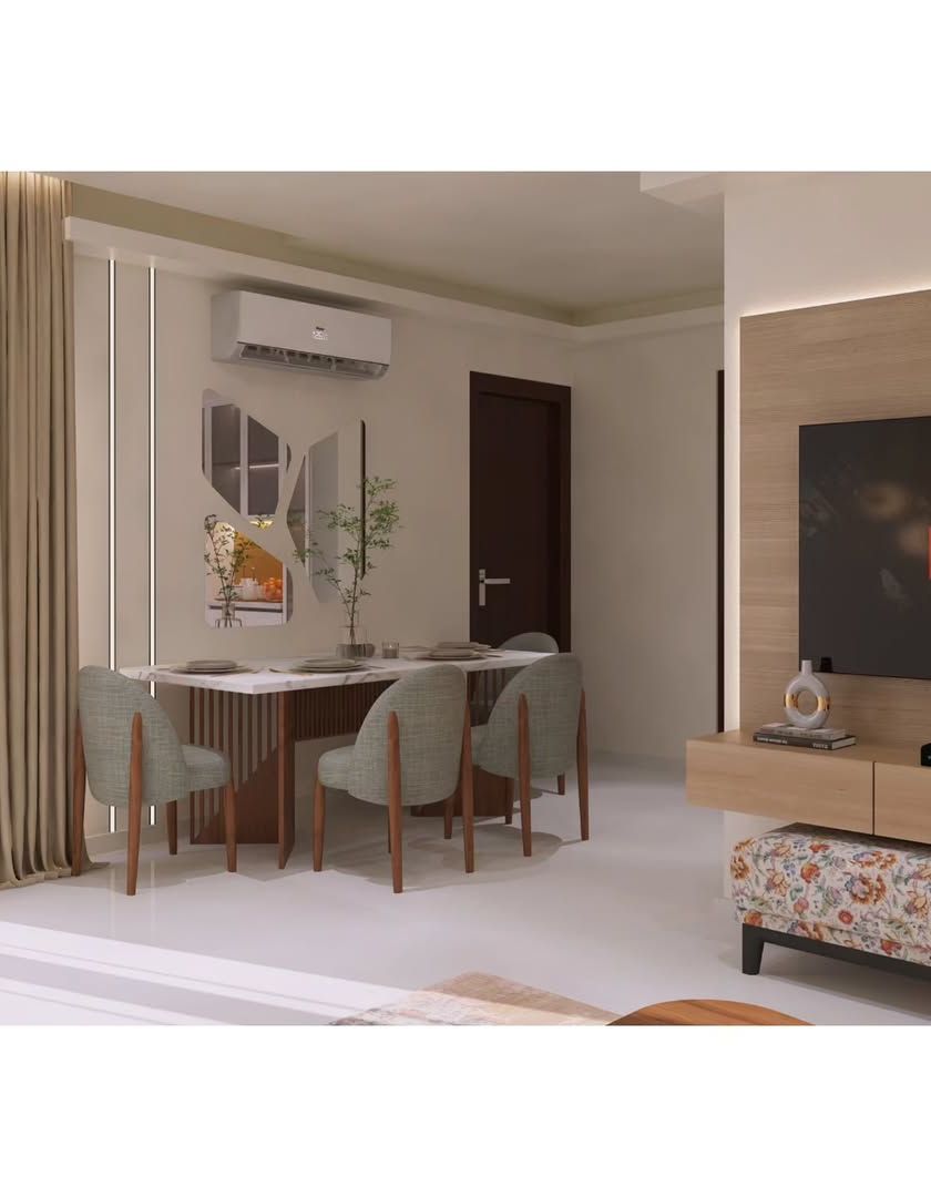 We design dining areas for everything from intimate meals to grand gatherings. This includes bespoke 6 to 10 seater dining tables in luxury marble and custom crockery units with features like fluted glass and integrated lighting.