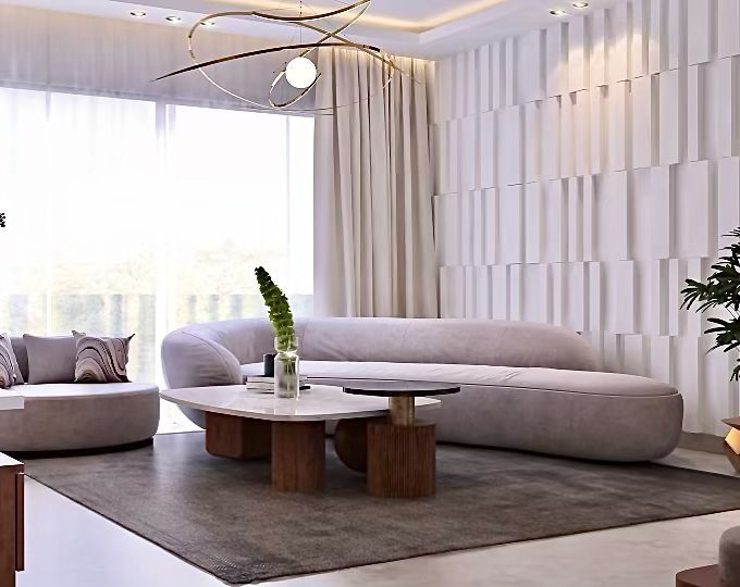We create inviting living rooms centered around comfort and style. Our designs feature custom sofas, from plush L-shaped sectionals to unique curved designs, paired with elegant TV consoles and coffee tables in materials like marble and rich veneers.