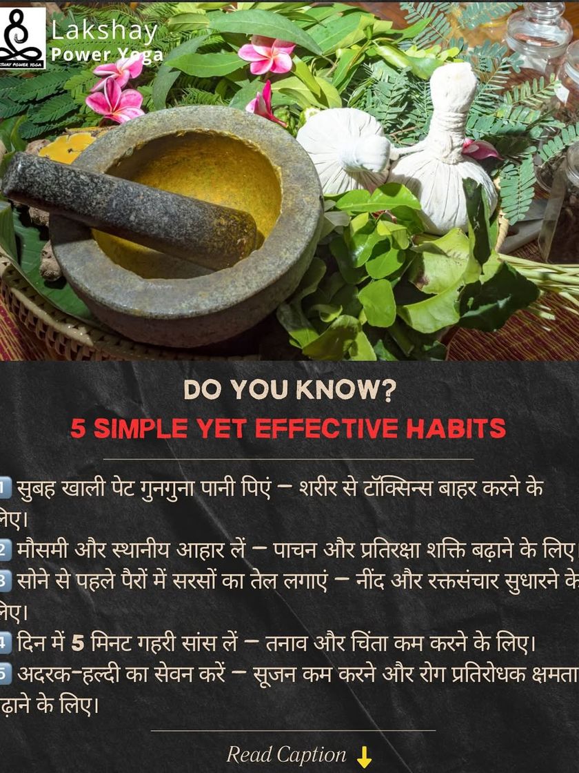 Chhoti-si aadat, lekin badi sehat ki shuruat. This section shares simple, science-backed tips from yoga and Ayurveda on nutrition, hydration, and daily routines. These small, consistent changes can lead to significant improvements in energy, digestion, and overall well-being.