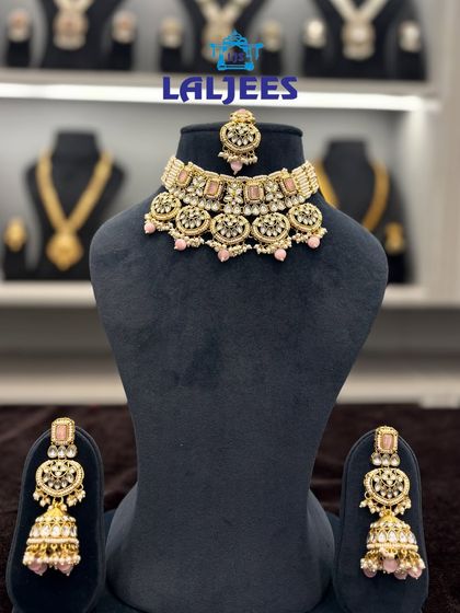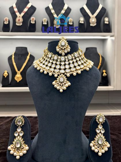 We rent out our full bridal jewelry collection so you can try, pick, and wear any set for your wedding without buying, all from our Lajpat Nagar store.