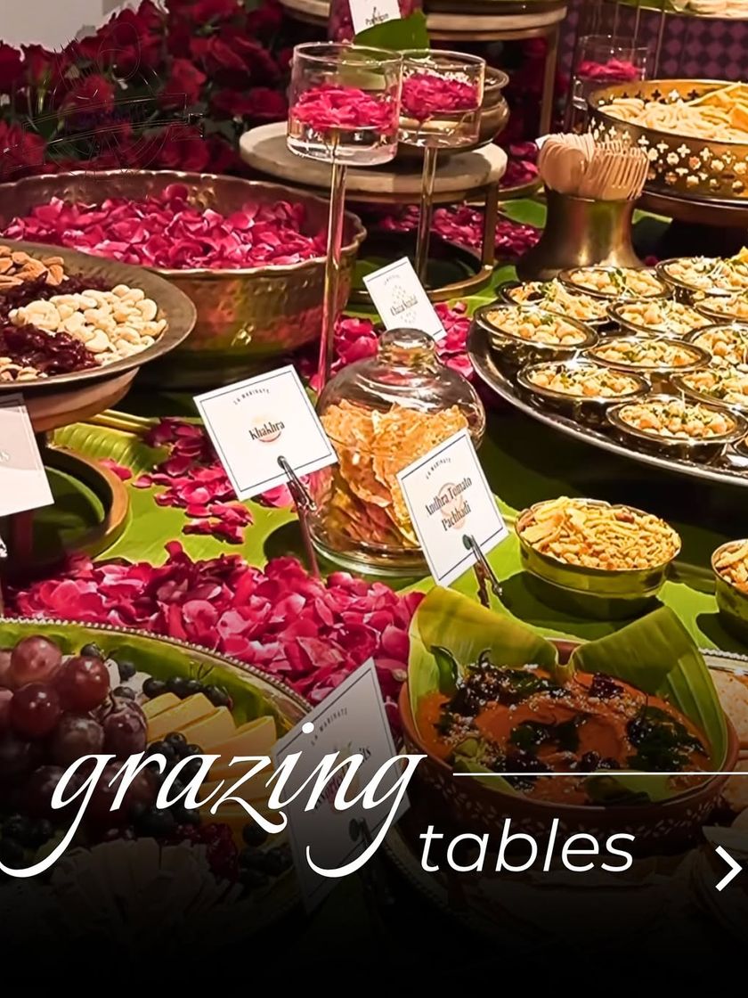 Our grazing tables are more than just food; they are interactive, social centerpieces for any event. We custom-design each spread with a mix of artisanal cheeses, charcuterie, fresh fruits, dips, breads, and a variety of hot and cold canapés, which can be themed to include everything from Mediterranean mezze to Indian street food.