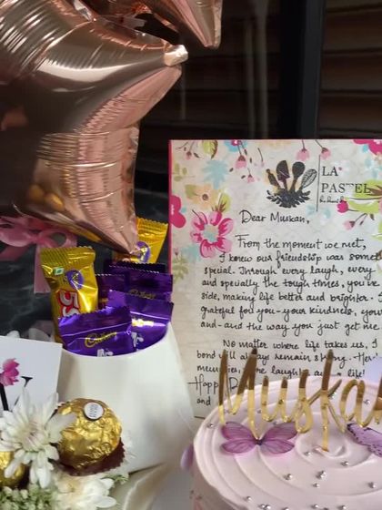 I create complete gift experiences for birthdays and anniversaries. Each hamper is fully customizable with my eggless cakes, fresh flowers, handwritten notes, and other treats to make their day extra special.