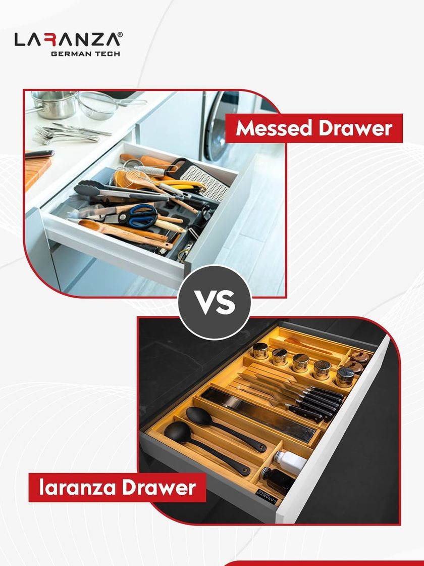 I solve the problem of kitchen clutter with precision-engineered organization. My systems ensure that every item, from cutlery and plates to spices and pans, has a dedicated, easily accessible home. I offer a variety of solutions including wooden, polymer, and aluminum trays, as well as custom dividers, so your drawers glide open to reveal perfect order, not chaos.