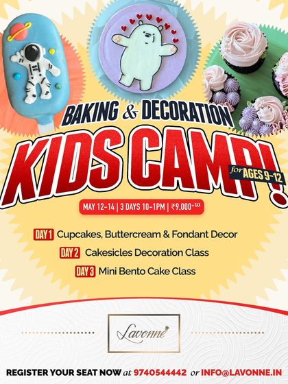 We run a three-day hands-on baking camp for kids aged 9 to 12 where they bake and decorate cupcakes, cakesicles, and bento cakes themselves in our professional kitchen.