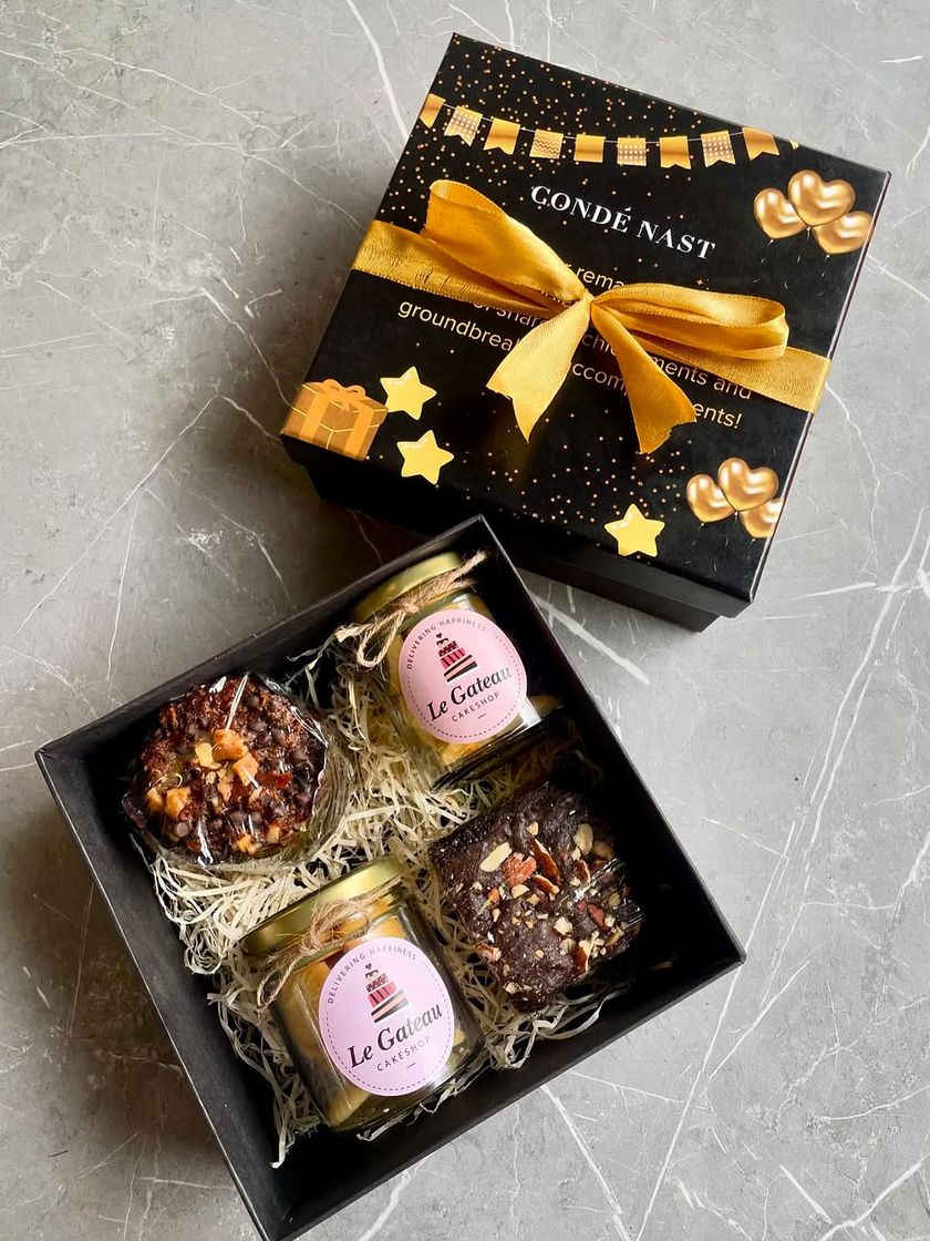 We create gift hampers that feel personal and look premium. We handle everything from custom branded boxes with your company logo to handwritten notes, and you can even build your own hamper with a mix of our brownies, cheesecakes, macarons, and more.