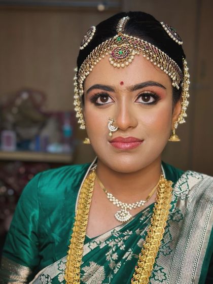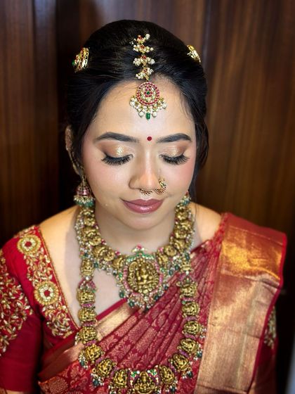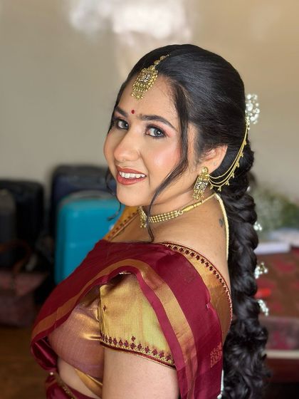 I specialize in creating elegant South Indian bridal looks, combining traditional elements with contemporary techniques. My expertise includes complete bridal styling - from intricate makeup application to traditional hairstyling and professional saree draping.