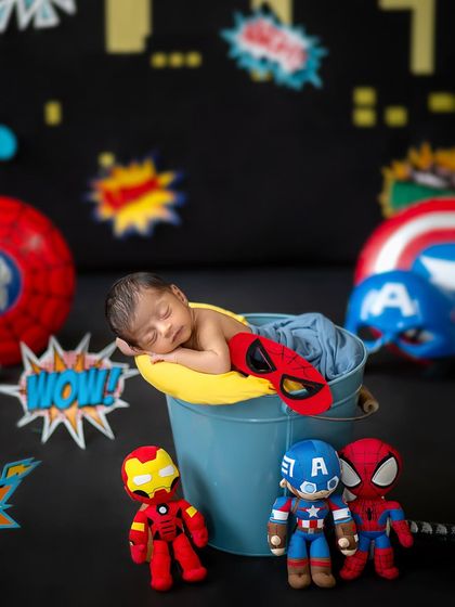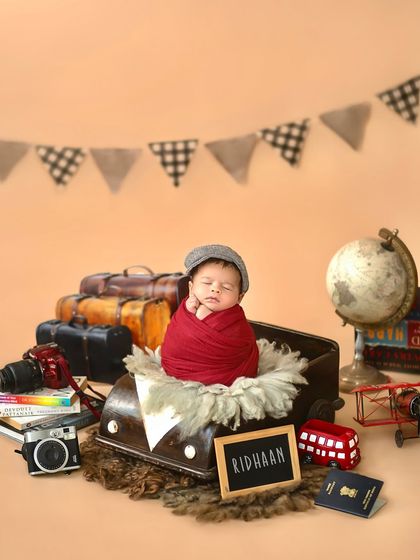 I do newborn photo sessions in my Malad West studio with a trained assistant, focus on safety, and offer custom themes and family or twin shoots.