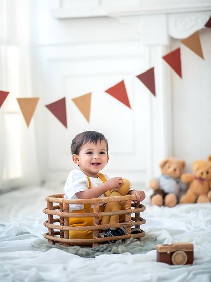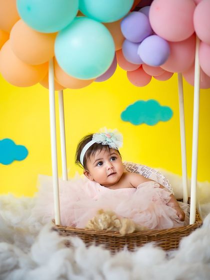 I photograph babies and kids in my Malad West studio or outdoors, using props and themes for milestone, birthday, and sibling shoots, with relaxed sessions focused on real moments and safety.