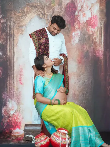 We offer maternity photography in our Noida studio or at your home in Delhi/NCR, with different styles and a full wardrobe of gowns, and deliver edited photos online in 10-15 days.