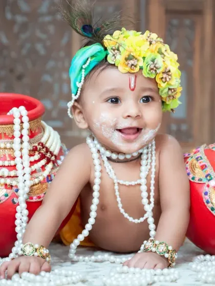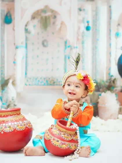 Fun themes & festive mini-sessions - Think lil mermaids, Krishna, Christmas - we do creative kids portraits and work with your baby’s mood, no stress.