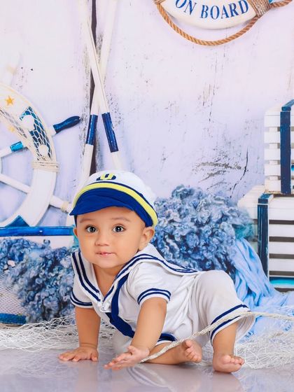 We photograph babies and kids in our Indirapuram studio with ready themes, props, and milestone setups so you get real, playful memories without bringing anything or worrying about the shoot.