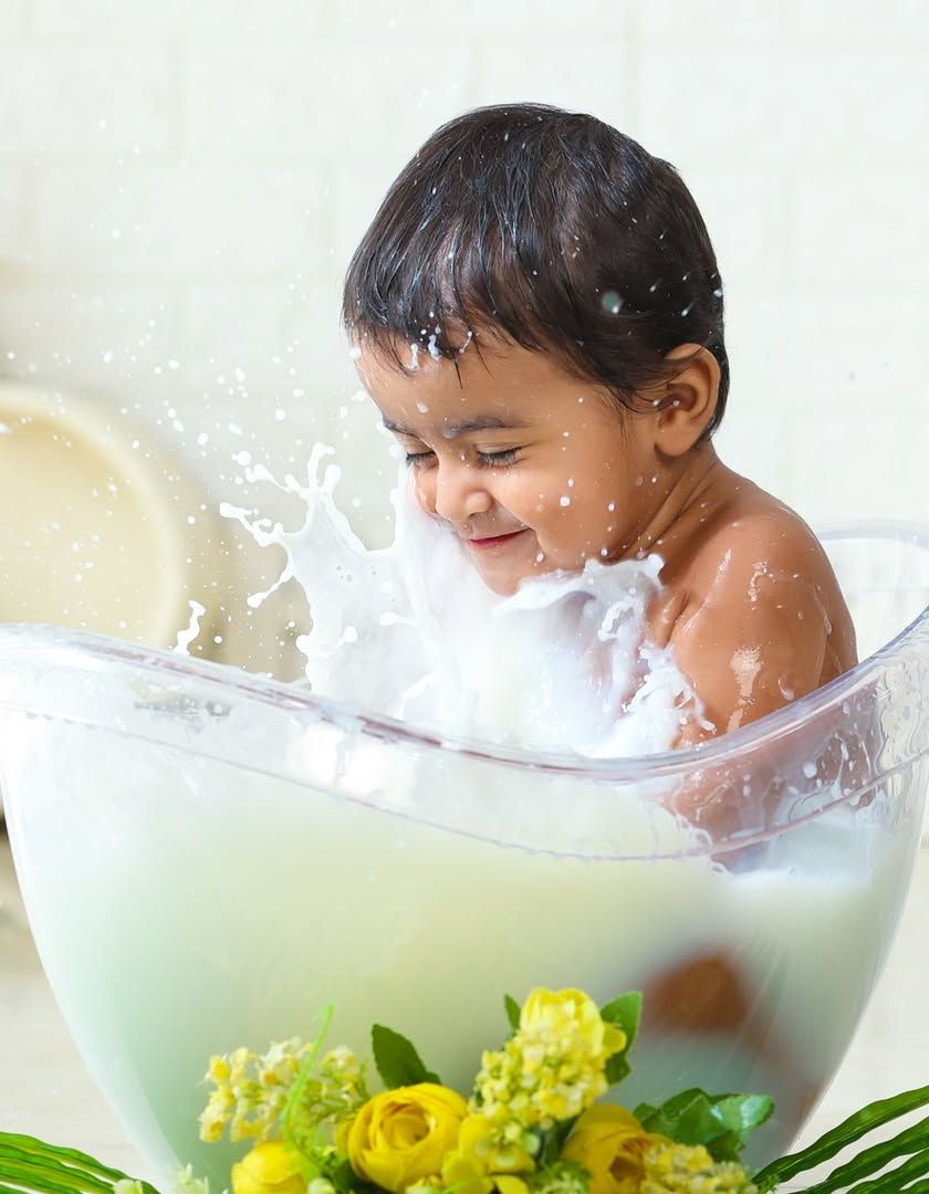 Let's get creative with a fun, themed photoshoot. From a day at the "beach" to a rustic cowboy adventure or a playful milk bath, I have a variety of unique setups that allow your child's personality to shine in an imaginative setting.