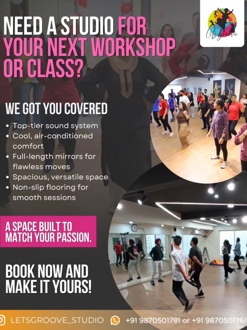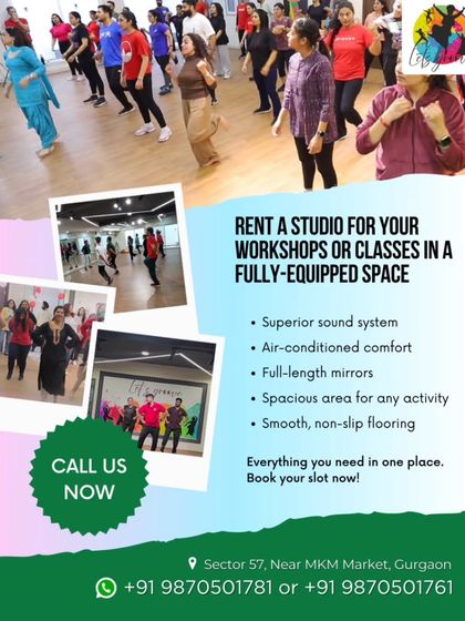 This is more than just a room. It's a 900+ sq. ft. air-conditioned creative hub with a killer sound system, mirrored walls, and versatile lighting, perfect for dance rehearsals, fitness classes, workshops, or content creation. We provide the perfect blank canvas in Gurgaon for you to bring your passion to life.