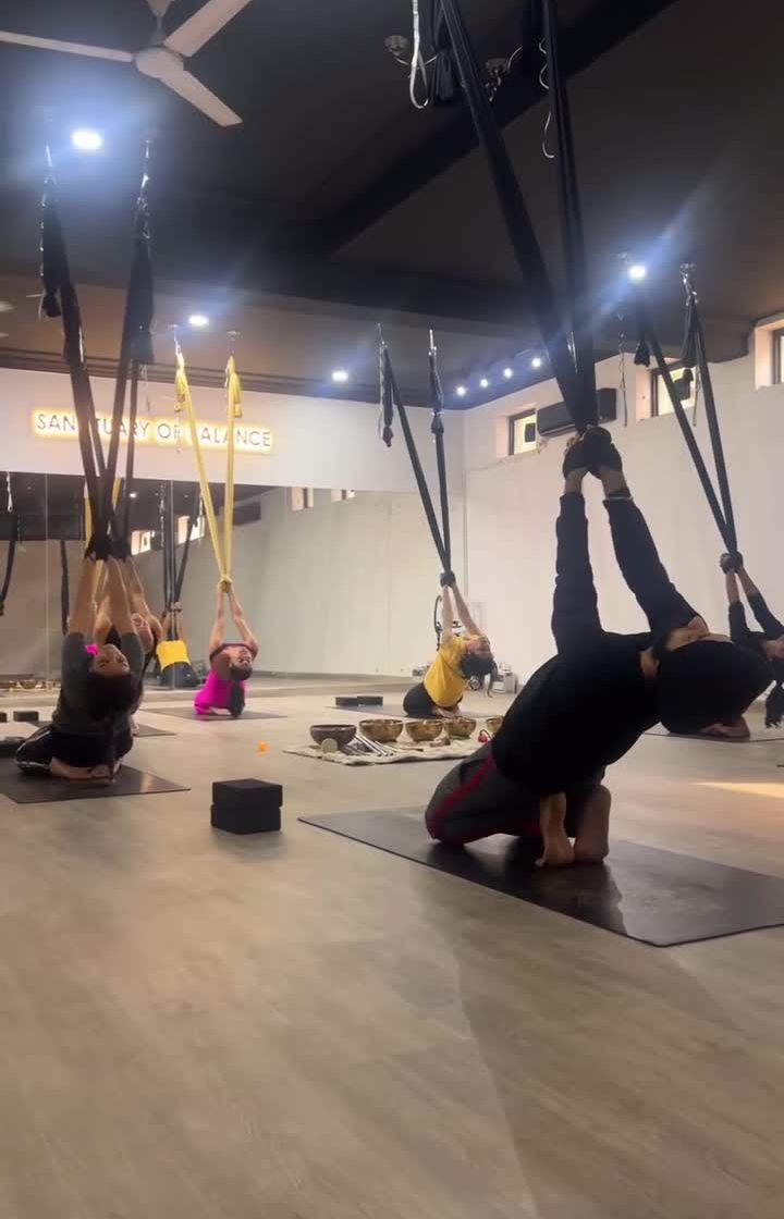 Discover the freedom of flying in our aerial yoga classes. Using the hammock for support, we guide you through flows that build core strength, increase flexibility, and allow you to safely explore inversions and backbends.