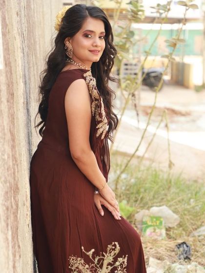 If you're looking for something contemporary, I have options like chic draped gowns and elegant designer sarees. These outfits are perfect for cocktail parties, receptions, or any event where you want a modern ethnic look.