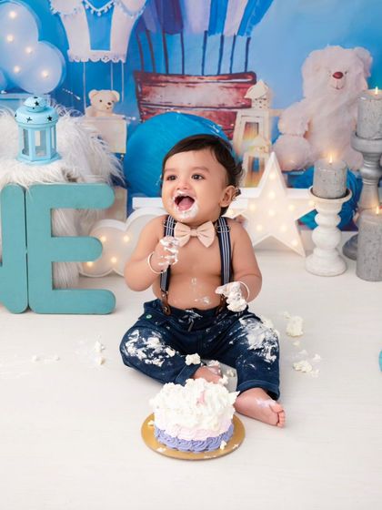 We do themed baby and children photography in our Noida studio with all props, costumes, and setups arranged, and we take only a few shoots each month for personal attention.