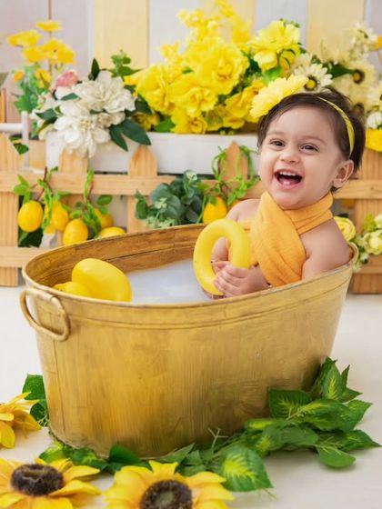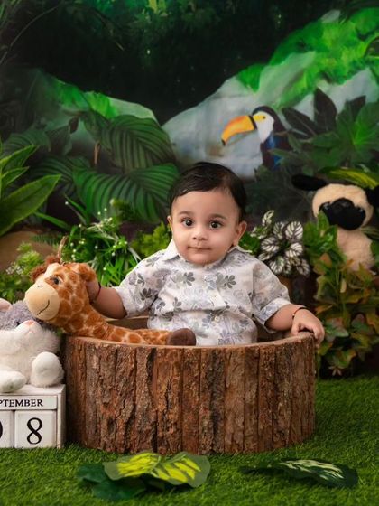 My studio in Noida is packed with props, backdrops, and costumes for every vibe. Boho, rustic, dreamy clouds, jungle adventures, carnival colors, royal gardens - I’ve got it all. Most families pick a luxury baby photo theme or mix and match for creative milestone photography. I handle the setup, you just bring your kiddo.