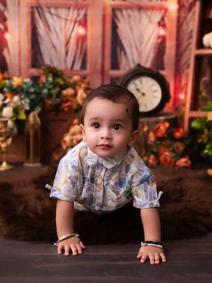 Sessions include styled setups with plush toys, balloons, and themed backgrounds. We ensure a fun, comfortable environment where children can be themselves while we capture their natural expressions and milestone moments.