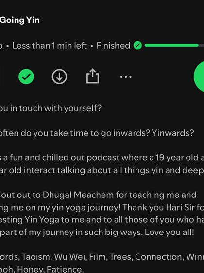I offer rhythmic podcast editing services and also produce my own content. My podcast, 'Going Yin', explores how the philosophies of Yin Yoga and Taoism can ground us in our busy lives. This demonstrates my skills in audio editing, content creation, and using sound as a medium for thoughtful conversation.