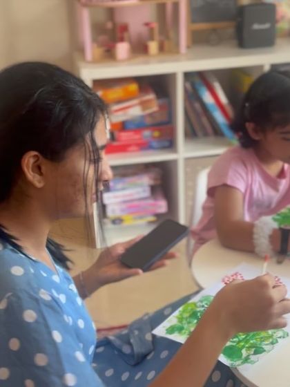 We offer a huge variety of hands-on activities to spark every child's interest. Our sessions can include everything from painting and drawing to sensory crafts with sponges, chalk, and even pistachio shells. We also do beading for custom bracelets and keychains, and paper crafts like folding magical fairies.