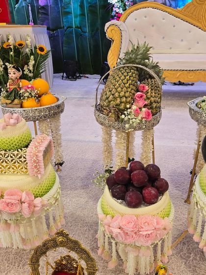 We rent and set up custom Maharashtrian Rukhwat displays with handcrafted doll scenes and take care of all arrangements at your wedding venue.