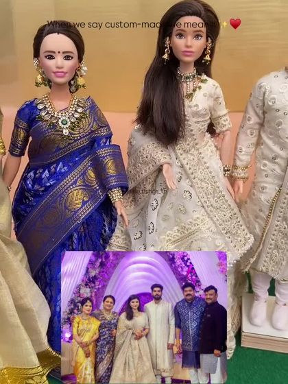 We bring your memories to life by creating custom-made dolls that look just like you and your family. We meticulously handcraft the outfits and jewelry to match your photos, creating a truly unique and personal centerpiece for your wedding or baby shower.