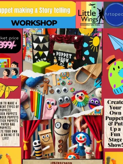 - Puppet Types: Participants build four specific types: Sock Puppet, Finger Puppet (felt/paper cone), Stick Puppet, and Paper Bag Puppet.