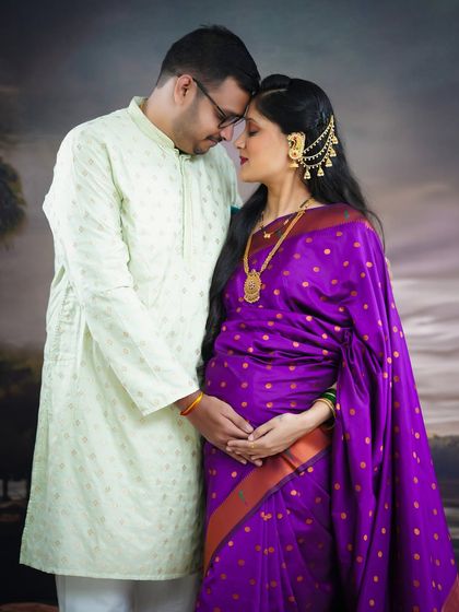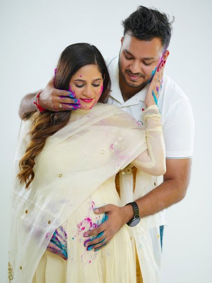 Celebrate your heritage with a traditional maternity photoshoot. We incorporate beautiful sarees, classic jewellery, and culturally significant props to create timeless images that honor your family's roots and the sacred journey of motherhood. This is a wonderful way to create meaningful heirlooms for your family.