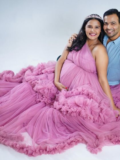 Feel like a queen in one of our stunning maternity gowns. We offer a wide selection, from flowing tulle dresses that create dramatic, dreamy portraits to elegant fitted gowns that beautifully highlight your bump. These sessions are perfect for capturing that radiant pregnancy glow in our comfortable studio setting.