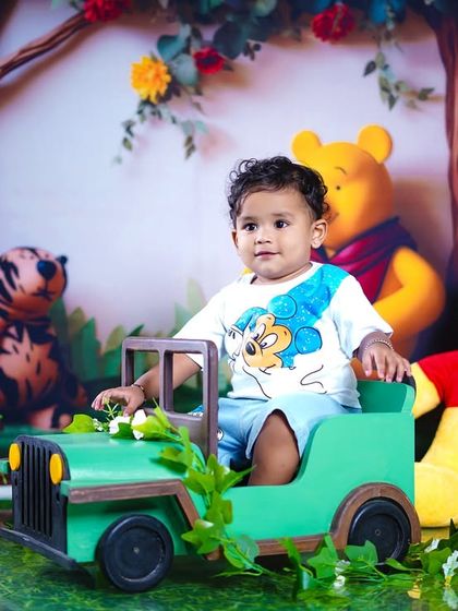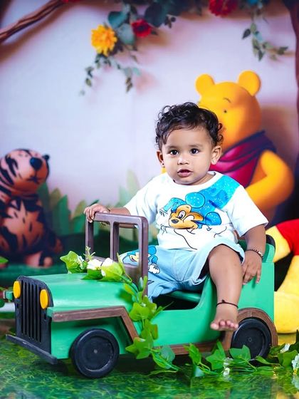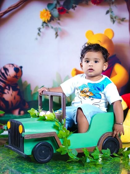 We specialize in creative toddler photography with themed setups like Winnie the Pooh, beach themes, and bunny motifs. Our sessions focus on capturing candid, joyful moments of your little ones using engaging props and playful settings.