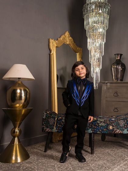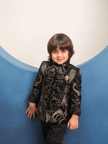 Designer Details That Stand Out - Hand-embroidered kids tuxedo, sequin work, and fancy fabrics - we love adding those wow touches.
