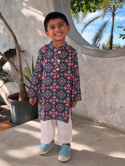 We make pure cotton festive Indian outfits for kids up to 8 years that are soft, easy to wear, and come in matching sibling sets, with custom sizes available.