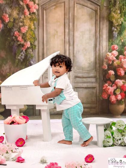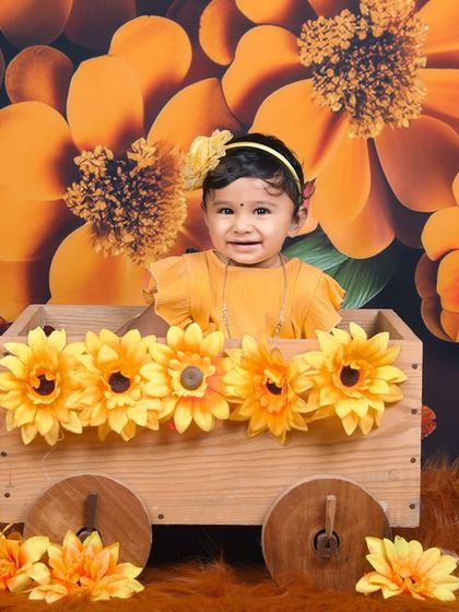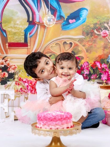 We specialize in capturing the playful and joyful moments of babies and toddlers through creative themed photoshoots. Our sessions include unique cultural themes, festive celebrations, and artistic recreations of Raja Ravi Varma's paintings. We're particularly known for our cake smash sessions and twin baby shoots.