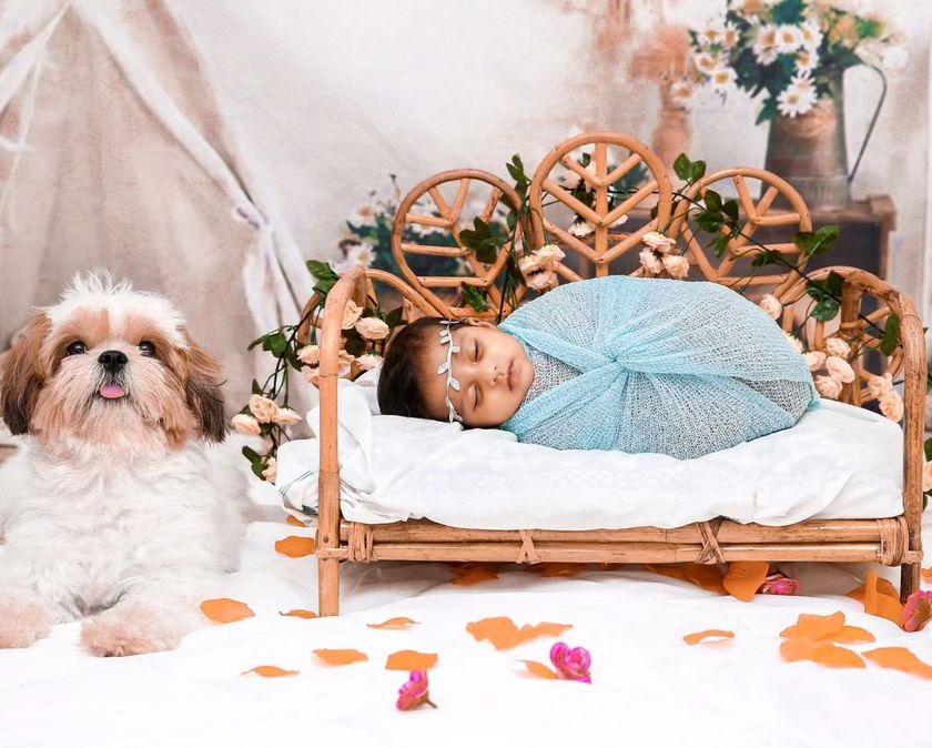 Your furry family members are always welcome in my shoots. I specialize in capturing the heartwarming and often funny interactions between babies and their beloved pets, creating truly unique family portraits that include every member of your kudumbam.