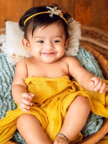I photograph babies and kids in natural, playful setups with simple props, focusing on real expressions and custom themes based on what your family wants.