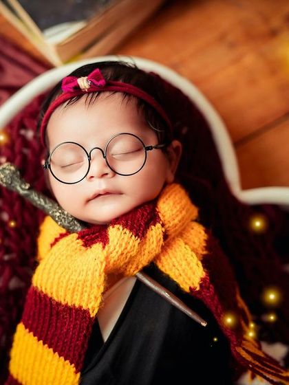 I do newborn photo sessions in my Bangalore studio with classic and creative themes, lots of props, and family portraits included, best for babies 5 to 20 days old.