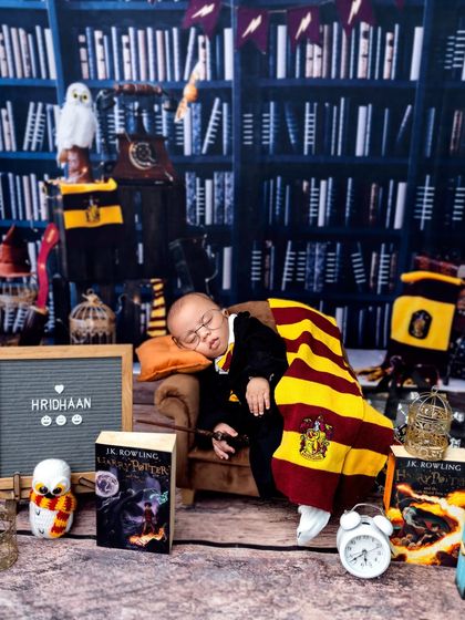Let's bring your imagination to life with a fun, themed photoshoot for your little one. From a magical Harry Potter setup to a tiny 'Boss Baby' or a glamorous spa day, I have a wide array of costumes and props to create unique and playful portraits. These sessions are perfect for showing off your baby's budding personality.