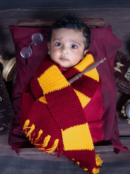 I create a safe and cozy space to capture your baby's first precious days. From classic wrapped poses with soft florals to fun themes like Krishna or Harry Potter, I focus on every tiny, perfect detail.