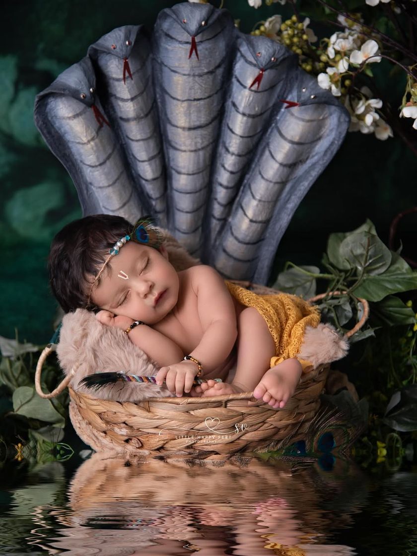 I celebrate your baby's arrival with themes inspired by India's rich culture and festivals. From divine Krishna and Shiva setups for Janmashtami and Sawan to vibrant celebrations for Diwali and Holi, I create timeless portraits that honor your traditions.