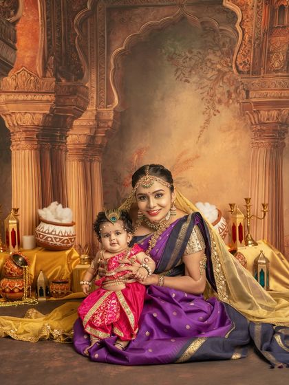 I absolutely love creating magical photoshoots for Indian festivals, especially Janmashtami. I provide elaborate, traditional backdrops and adorable Krishna or Radha costumes for your little ones. These sessions are a unique and beautiful way to celebrate our culture and create festive memories.