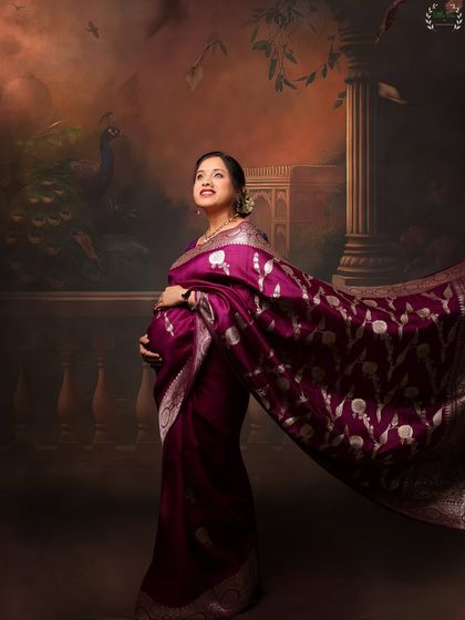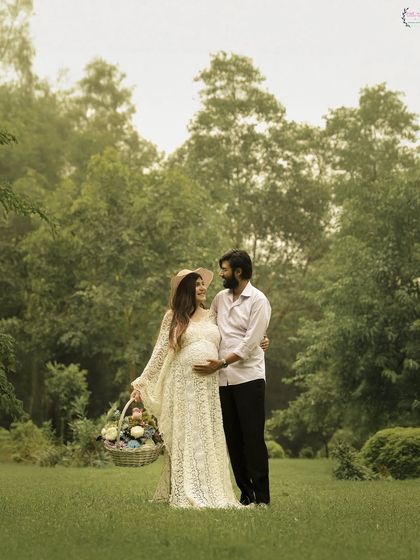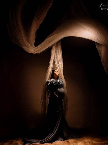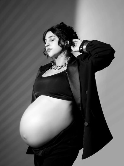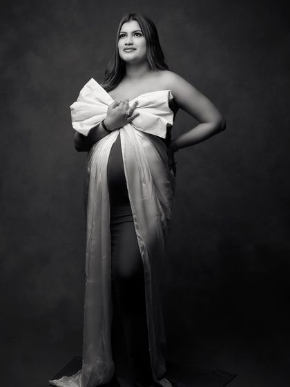 We handle everything for your maternity photoshoot including wardrobe, makeup, props, and planning so you just show up and choose your style, with options for studio or outdoor shoots and family or pets included.