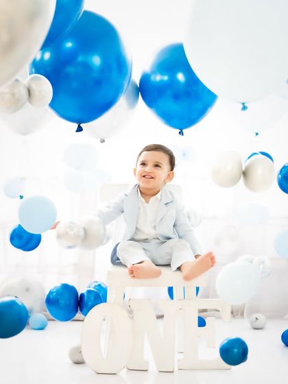 From their first proud push-up to the joyful mess of a first birthday cake smash, I capture the big milestones of your baby's first year. I provide a variety of fun and celebratory setups, including balloon wonderlands and themed decorations, to make these sessions unforgettable.