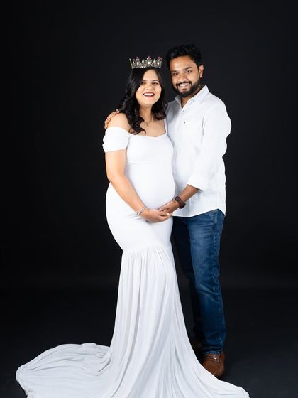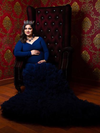 You don’t need to fuss about outfits or locations. Just bring yourself, your bump, and maybe the fam. I’ve got two studios in Bangalore (Dommasandra & Whitefield) with all the lighting, backdrops, and setups sorted. Pick any gown from my wardrobe - from flowy fabrics to elegant mermaid cuts, I have options for every vibe. I work with pro hair and makeup artists so you’ll feel pampered and comfortable.