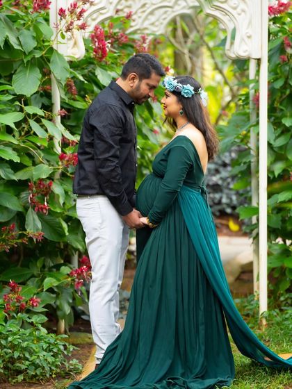 We offer maternity photo and video sessions in our Bangalore studios with gowns, hair, makeup, props, and themes included so you just show up and get everything done in one place.