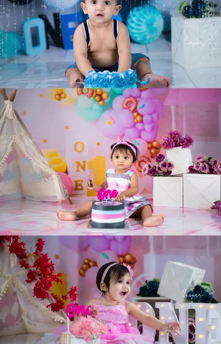 We specialize in creating vibrant and messy cake smash sessions to celebrate your child's first birthday. Our Bangalore studios are equipped with a wide range of creative backdrops, props, and themes, from popular cartoons to elegant pastel setups, ensuring a fun and memorable experience.