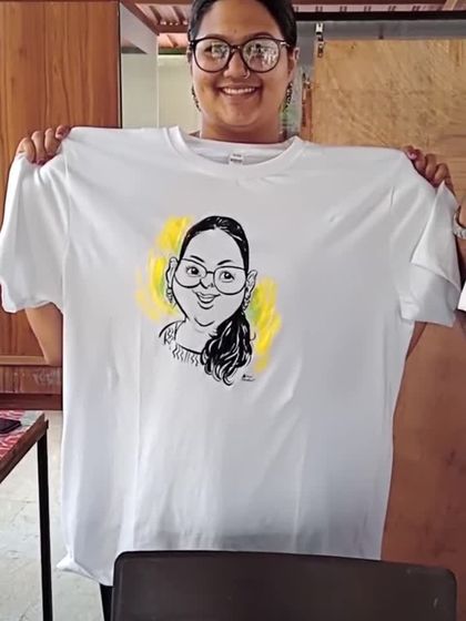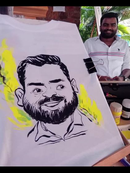 Go beyond paper with a truly unique party favor. I sketch live caricatures directly onto T-shirts, giving your guests a fun, wearable memory they can take home and show off. This option is perfect for making any event, from birthdays to corporate retreats, stand out.
