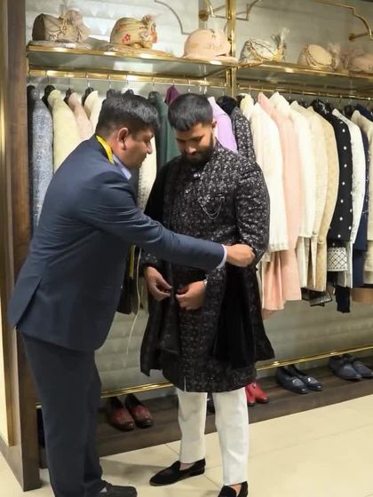 We specialize in handcrafted wedding sherwanis, regal bandhgalas, and Indo-western outfits that make you stand out. Each piece is designed with a focus on a perfect fit and intricate detailing, blending royal looks with modern style for your most important moments.